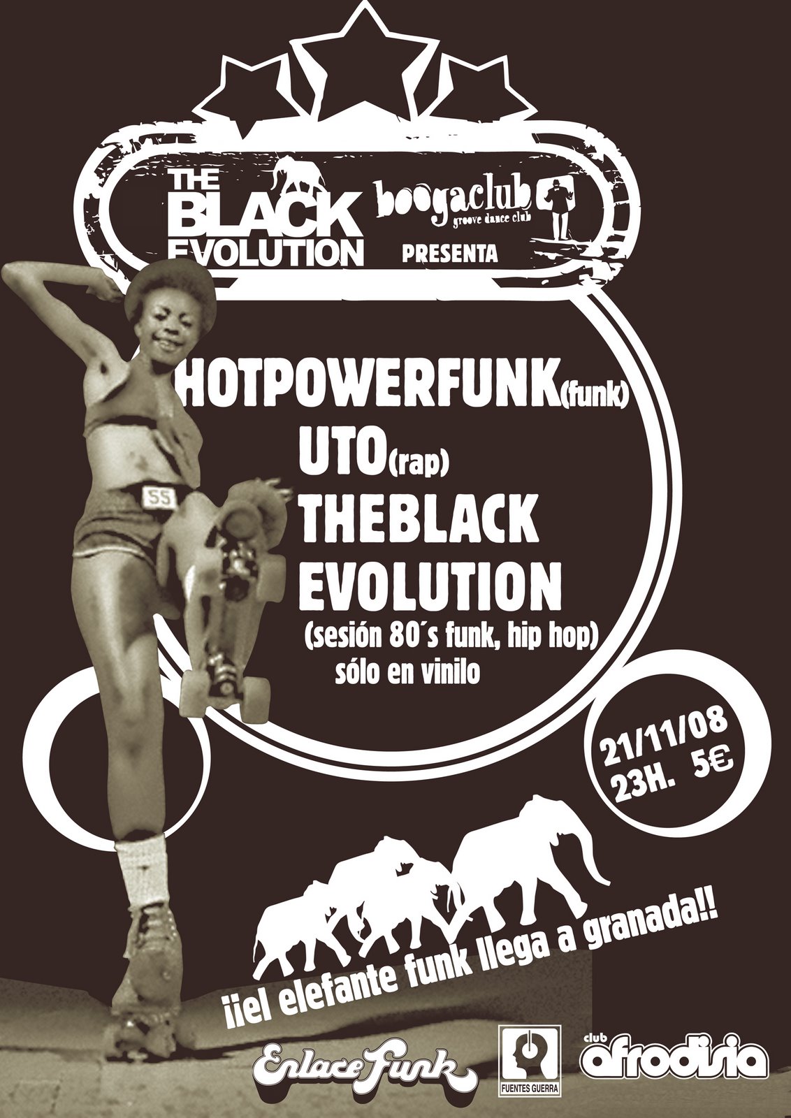 The Black Evolution es una agrupación de deejays residentes en Córdoba, dedicados exclusivamente a la difusión de la música negra, especializados en funk, jazzfunk, reggae, y hiphop (old school y new school). Su actitud gira en torno a la matriz One Nation Under a Groove.