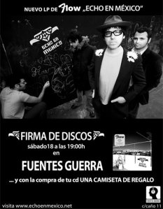 Te vas a Fuentes Guerra el sábado 18 a las 19:00h, adquieres un «Echo en México» y te regalan una camiseta usada por Fernando Flow durante la grabación del disco en un estudio Tolteca el día que se les rompió el aire acondicionado.
