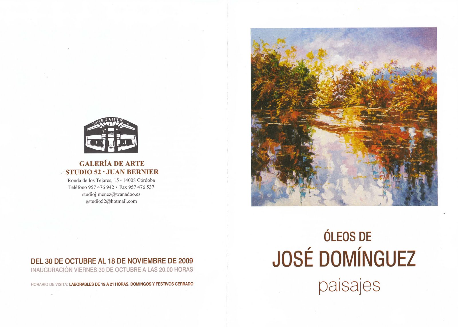 Exposición de José Dominguez en la Galería Studio 52 Juan Bernier , que tendrá lugar el día 30 de Octubre a las 20:00h