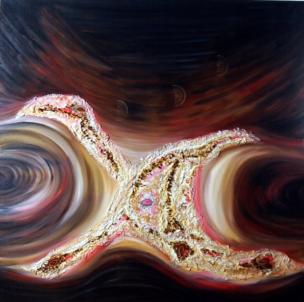 Dolores Ortega Martín es una artista cordobesa con un punto de vista muy especial y una interesante visión de la vida a través del color y textura de su obra. Obra muy personal con una contemporánea e intrigante apariencia y en busca de lo que hay más allá del Exterior desde su Interior. Unos agraciados Aslándticos pueden dar fé de ello pues uno de sus cuadros corona su local de ensayo y que conste que fué un regalo.