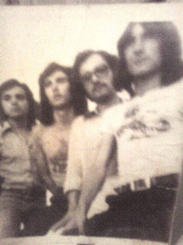Ensayábamos todas las noches en una habitación que alquilamos en una casita de Valdeolleros, logrando debutar por el mes de abril en el salón Cimbro´s de La Rambla. Imborrable gran noche la de aquel dia!!, nos lo pasamos de miedo!! Teníamos un repertorio de disfrute total!!. Básicamente, versiones de los Beatles, Status Quo, Grand Funk, Rolling Stones, Chicago, Storm… junto con algún éxito el momento. Continuamos las actuaciones durante el verano por pueblos de Badajoz, Ciudad Real y Córdoba, tocando en una gran verbena de ocho días en el barrio de la Fuensanta. Allí colaboró otro gran amigo y cantante como fué Miguel «Coocker» Navarro ( Q.E.G.E.) Desde aquí les envio un grandísimo abrazo a Miguel, Manolo, Gonzalo, ( gracias por la foto) y en especial a Rafa Calero, pues a él, creo que le debo en gran parte, el que yo continuara en la música hasta hoy.»